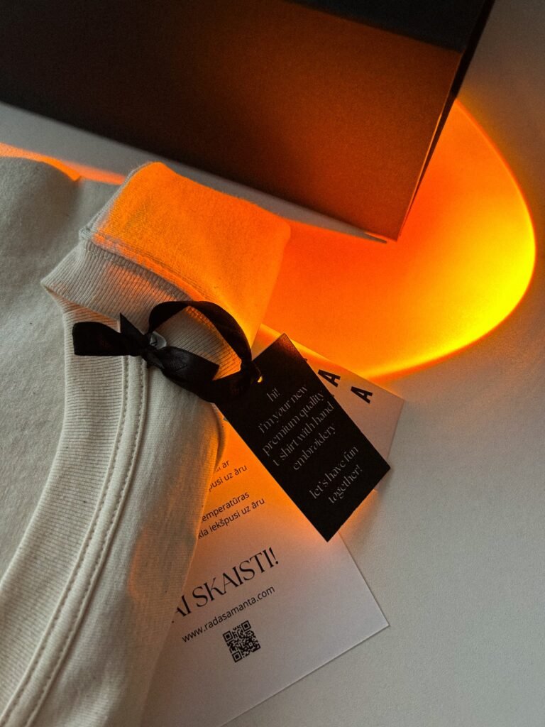 Priecājies par izšuvumu uz apģērba, taču, kad jūti, ka apģērbs ir nokalpojis savu un ir laiks ierāmēt izšuvumu – sazinies ar mani. Es veikšu izšuvuma diegu labojumus (ja nepieciešams), ierāmēšu rāmī un nosūtīšu darbu jums atpakaļ.*